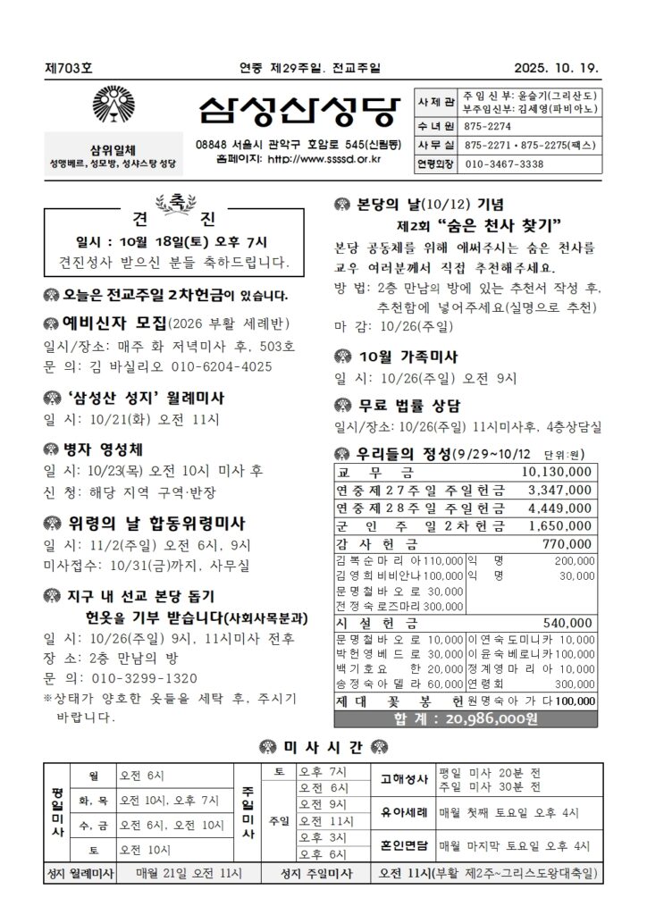 2025년 10월 19일(연중제29주일.전교주일) 10월 19, 2025 0 Comment Post By:관리자 Share: Prev You Might Also Like 12 10월 2025 0 2025년 10월 12일(연중제28주일.군인주일) 4 10월 2025 0 2025년 10월 5일(연중제27주일) 4 10월 2025 0 2025년 9월 28일(연중 제26주일)