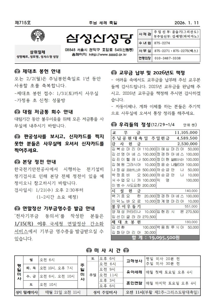 2026년 1월 11일(주님세례축일) 1월 20, 2026 0 Comment Post By:관리자 Share: Prev Next You Might Also Like 20 1월 2026 0 2026년 1월 18일(연중제2주일) 20 1월 2026 0 2026년 1월 4일(주님공현대축일) 27 12월 2025 0 2025년 12월 28일(예수, 마리아, 요셉의 성가정 축일)