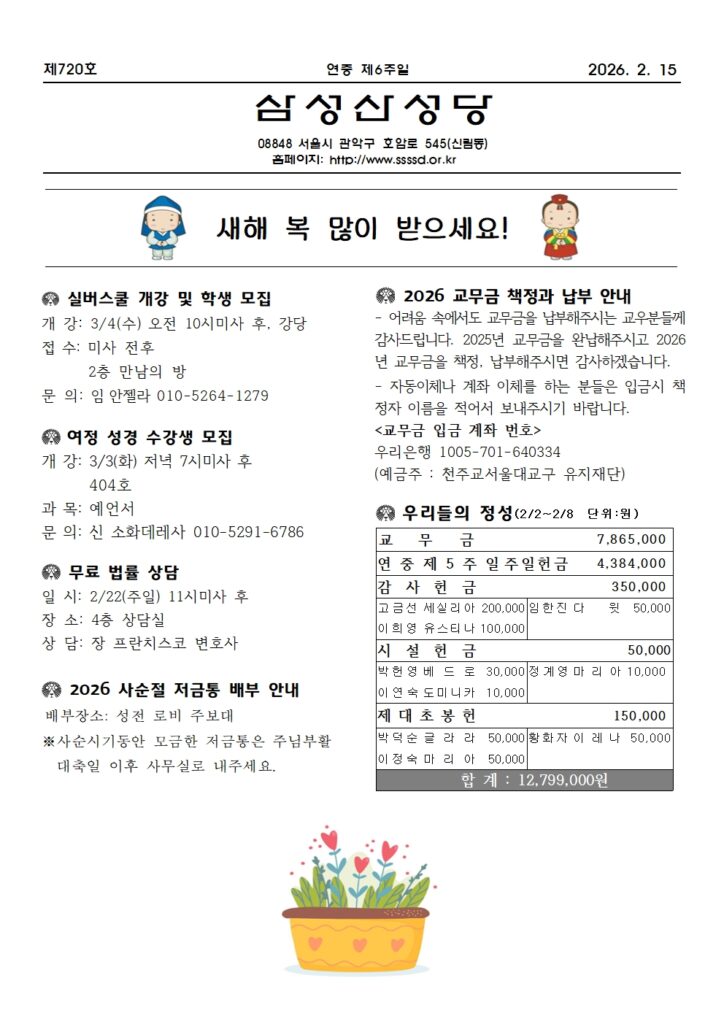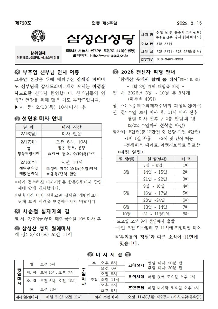 2026년 2월 15일(연중제6주일) 2월 22, 2026 0 Comment Post By:관리자 Share: Prev You Might Also Like 10 2월 2026 0 2026년 2월 8일(연중제5주일) 10 2월 2026 0 2026년 2월 1일(연중제4주일) 1 2월 2026 0 2026년 1월 25일(연중제3주일.하느님의 말씀 주일.해외원조주일)