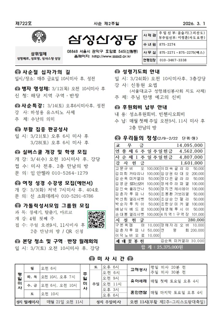 2026년 3월 1일(사순제2주일) 3월 2, 2026 0 Comment Post By:관리자 Share: Prev You Might Also Like 2 3월 2026 0 2026년 2월 22일(사순제1주일) 22 2월 2026 0 2026년 2월 15일(연중제6주일) 10 2월 2026 0 2026년 2월 8일(연중제5주일)