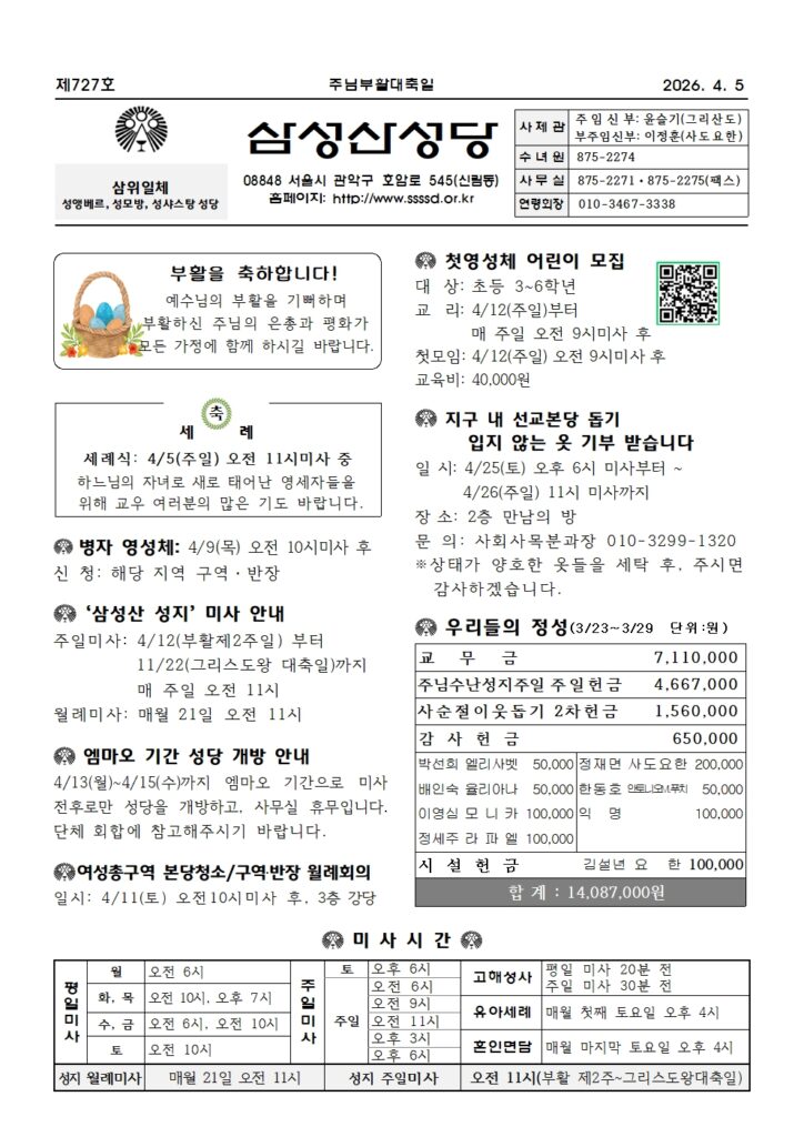 2026년 4월 5일(주님부활대축일) 4월 7, 2026 0 Comment Post By:관리자 Share: Prev You Might Also Like 1 4월 2026 0 2026년 3월 29일(주님수난성지주일) 22 3월 2026 0 2026년 3월 22일(사순제5주일) 18 3월 2026 0 2026년 3월 15일(사순제4주일)