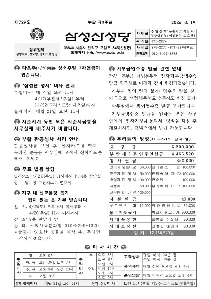 2026년 4월 19일(부활제3주일) 4월 17, 2026 0 Comment Post By:관리자 Share: Prev You Might Also Like 17 4월 2026 0 2026년 4월 12일(부활제2주일, 하느님의 자비주일) 7 4월 2026 0 2026년 4월 5일(주님부활대축일) 1 4월 2026 0 2026년 3월 29일(주님수난성지주일)